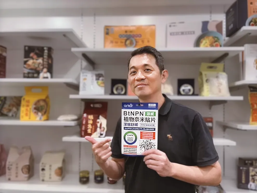 Lin Zhi-Sung using BtNPN plant nano patches to relieve muscle soreness
